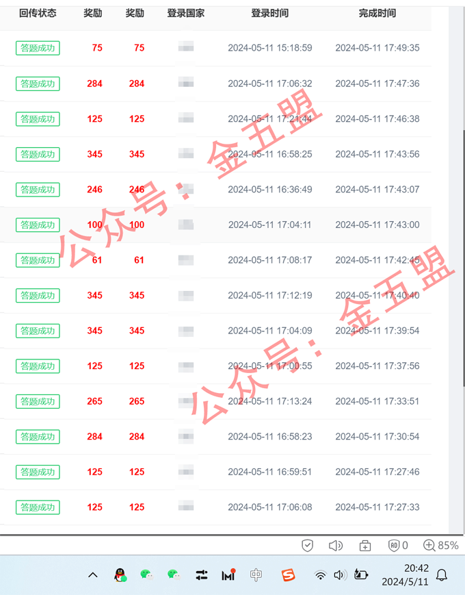 金五盟海外问卷调查,5月11日部分后台业绩记录